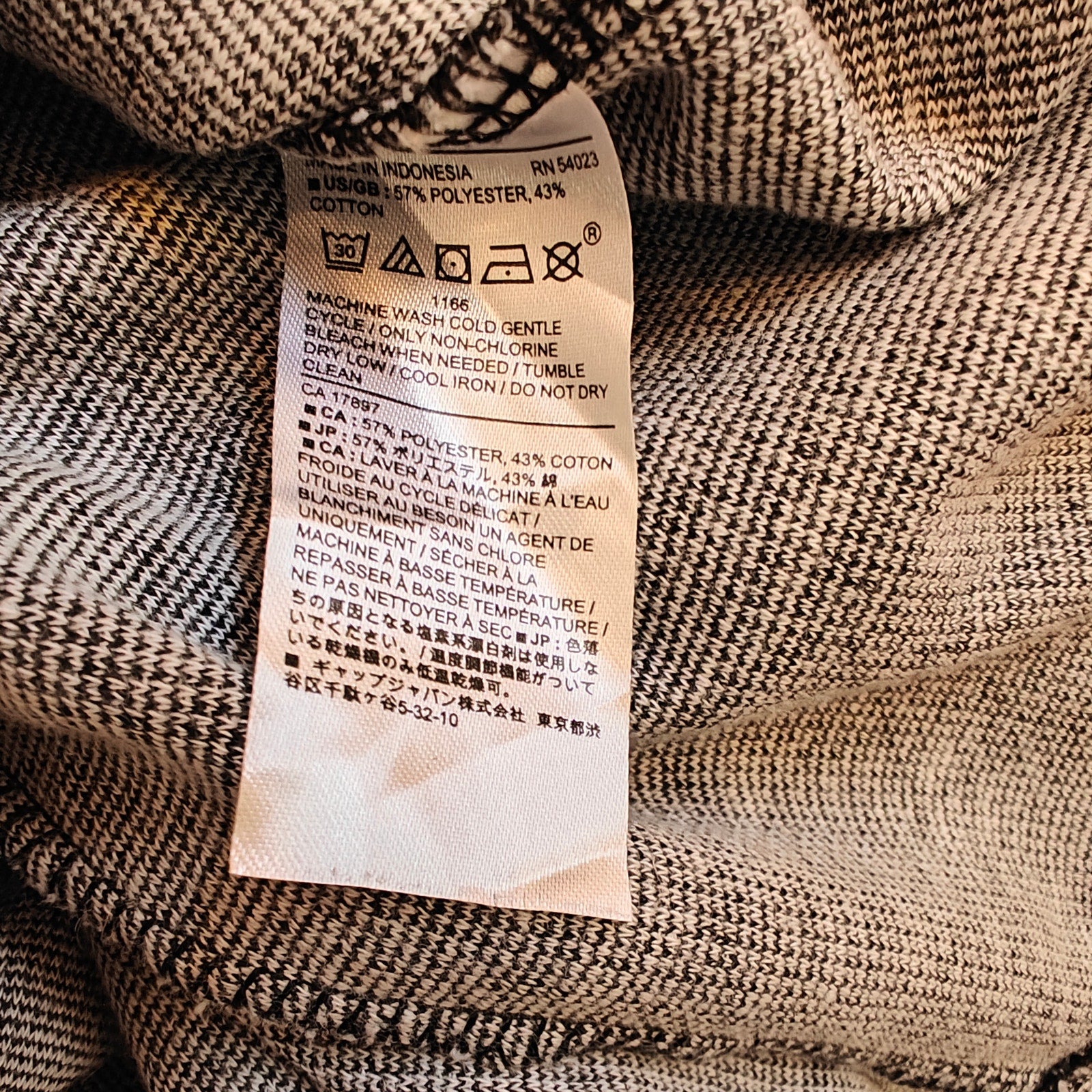 This Banana Republic gray knit dress is a versatile and polished wardrobe staple. Designed in a textured herringbone/tweed-look knit, it features short sleeves and a flattering faux-wrap front skirt detail that adds subtle dimension without an actual slit. The fabric has a nice weight and structure, offering a refined look while remaining comfortable for all-day wear.