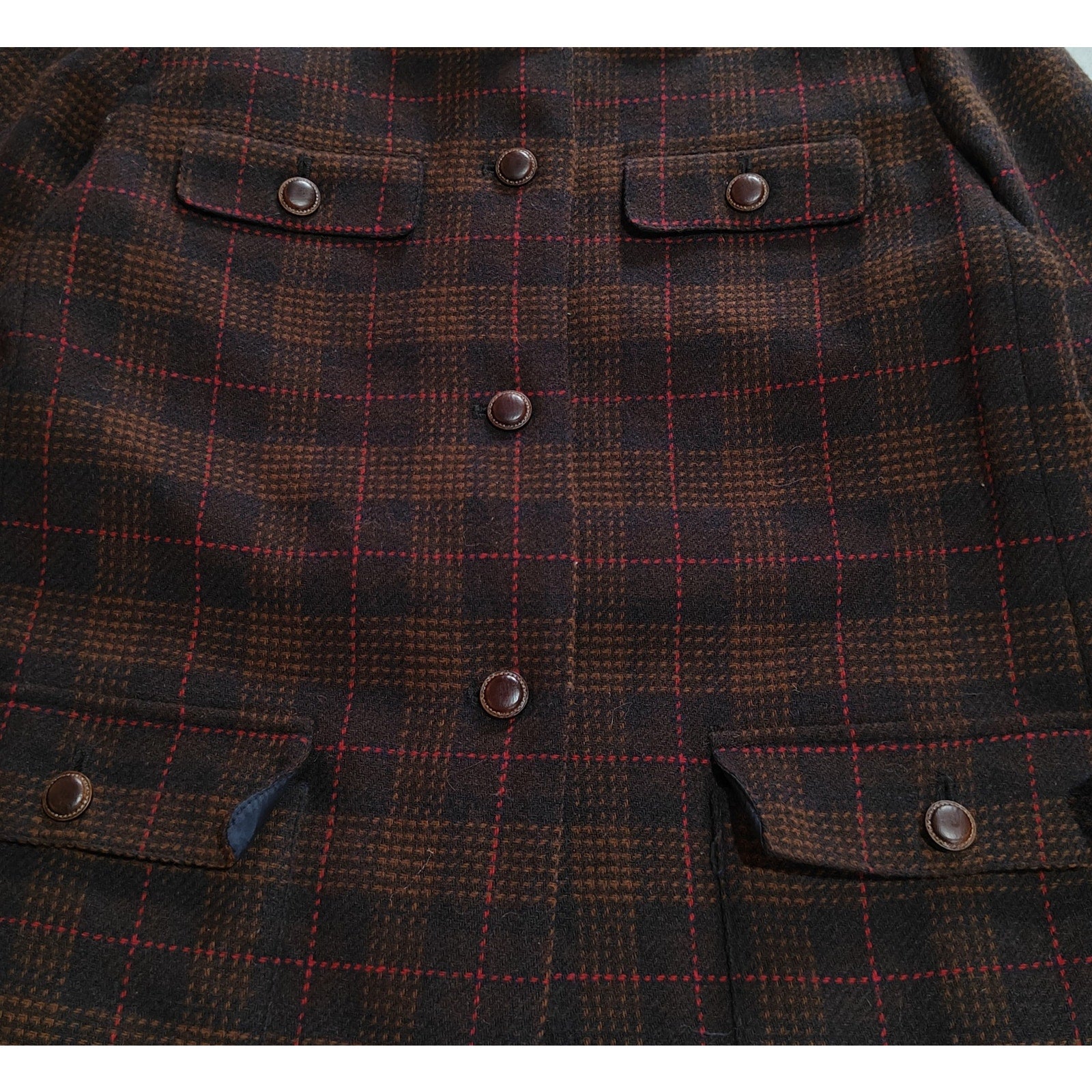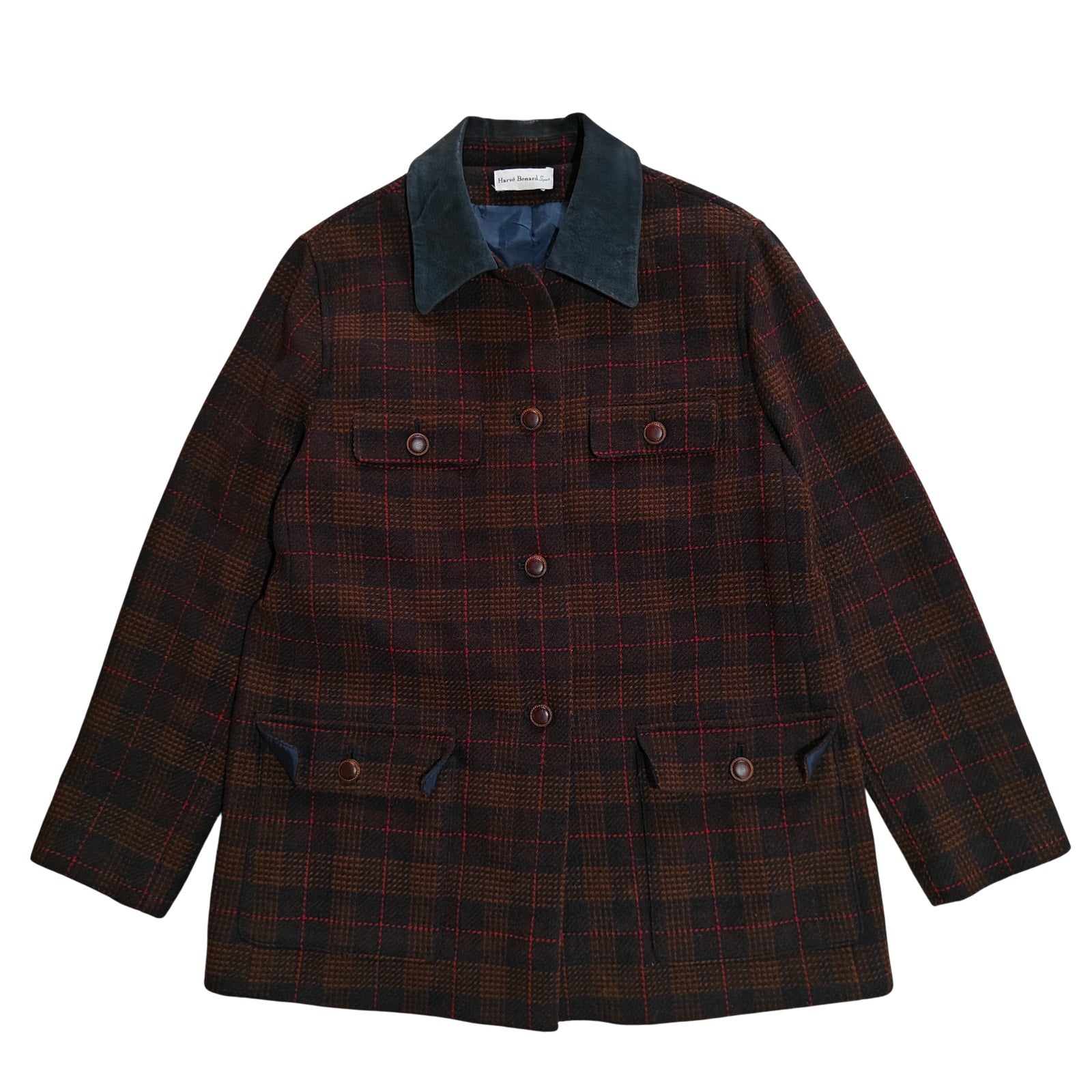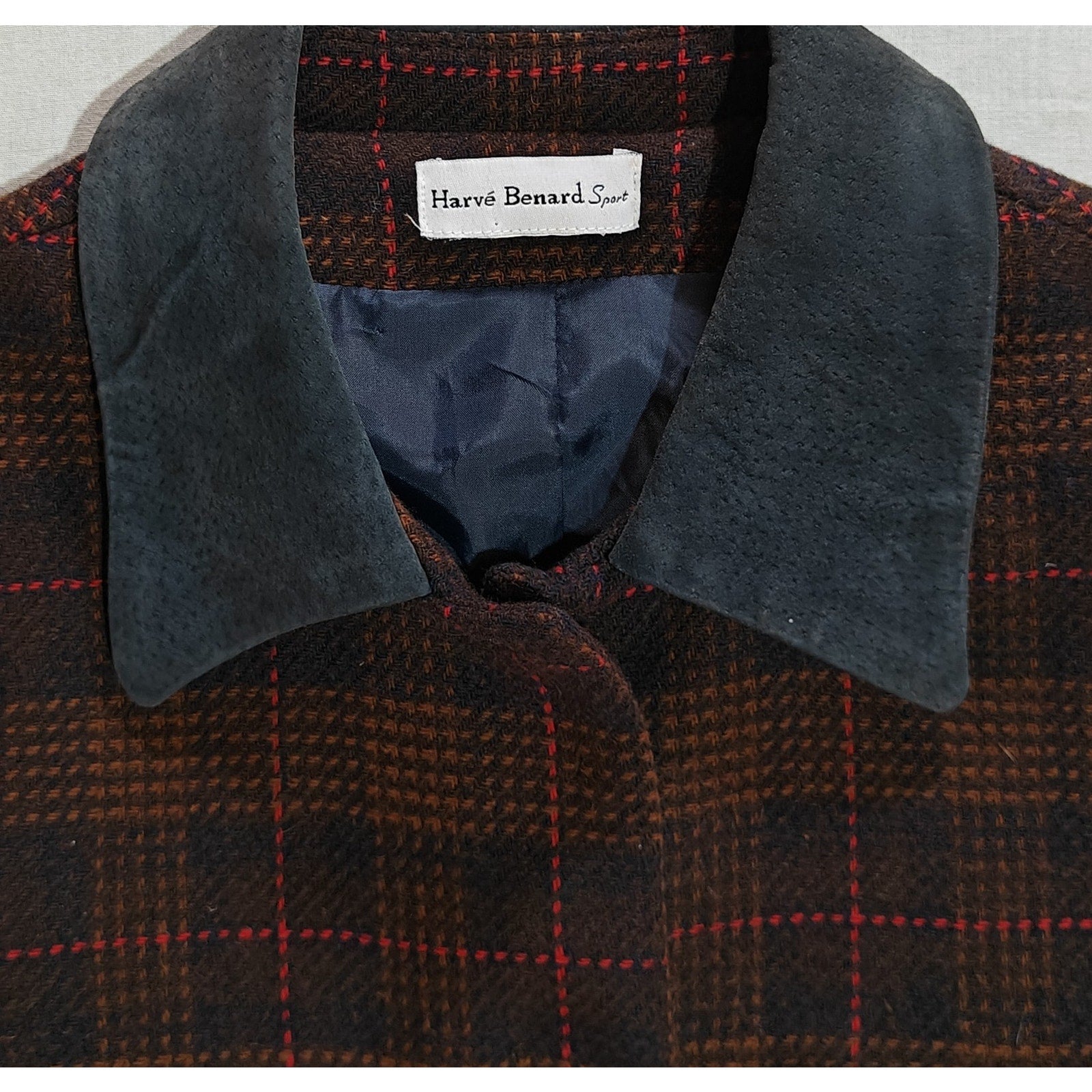 Classic Harvé Benard Sport plaid jacket in rich brown and navy tones with red