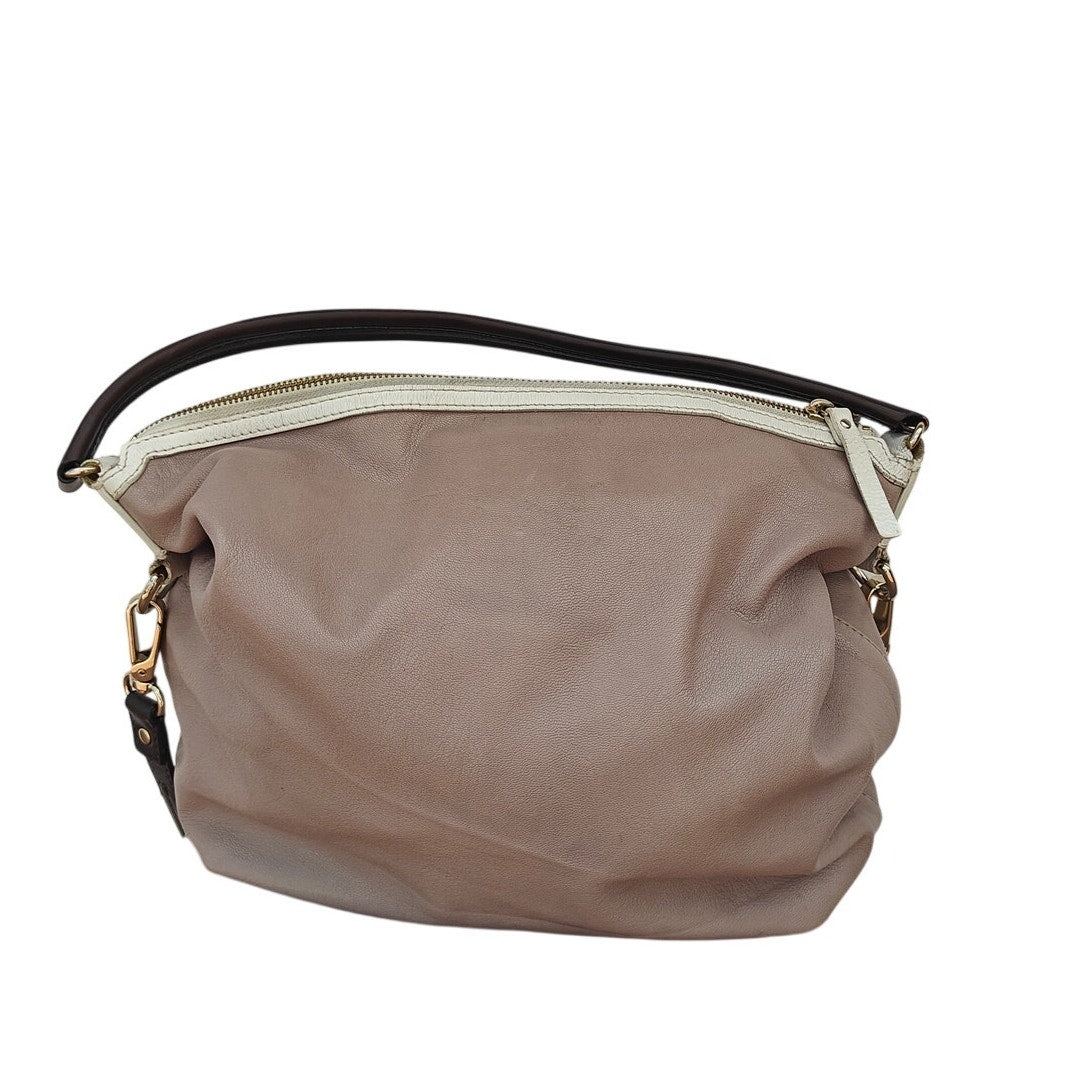 Taupe Leather Hobo Shoulder Bag