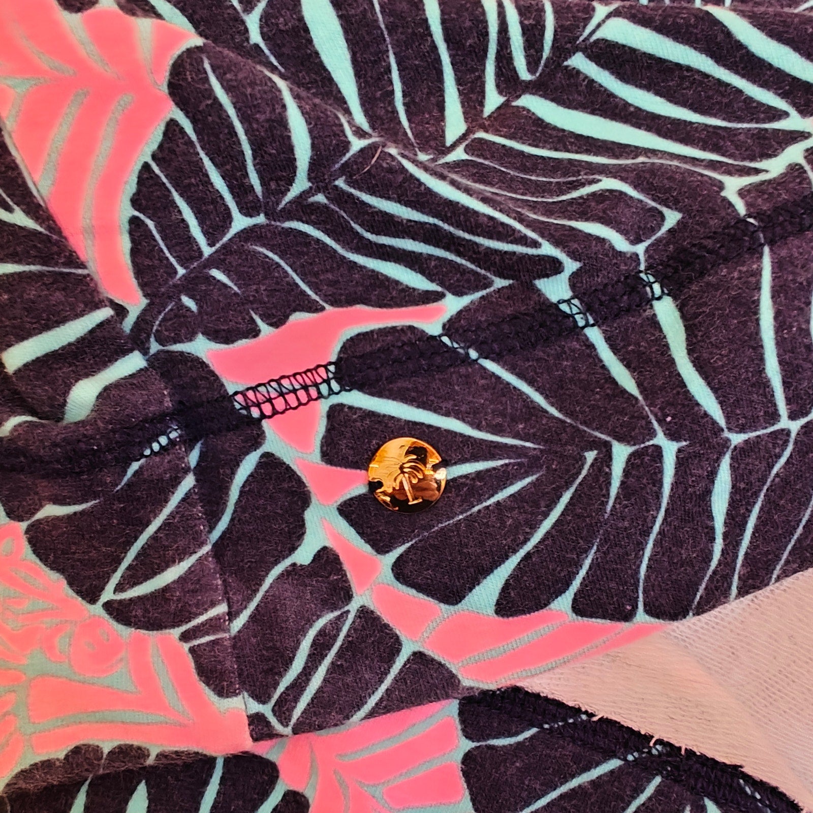 Color/Print: Pink & Navy Tropical Palm Leaf