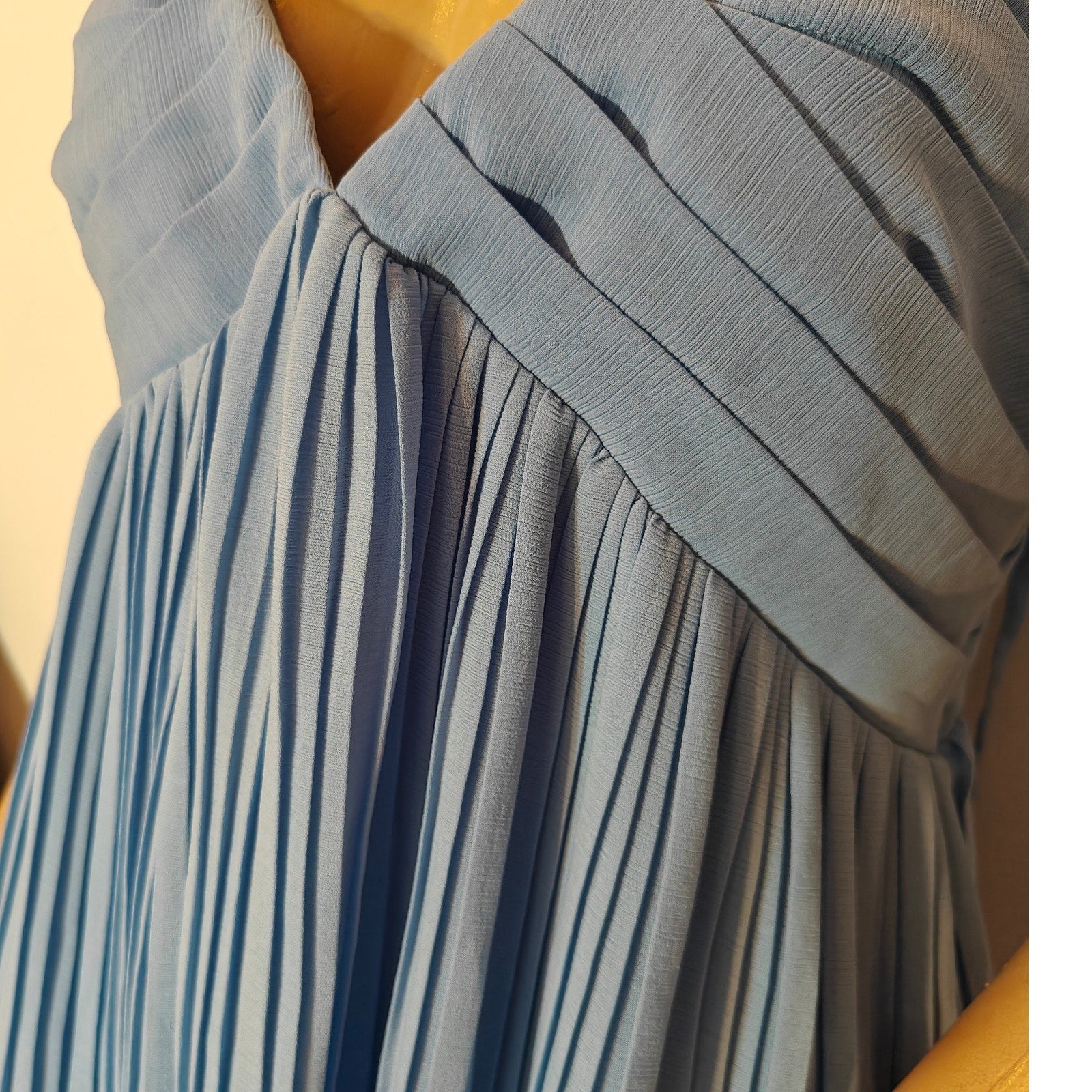 Light Blue Pleated Flutter Sleeve Open Back Dress