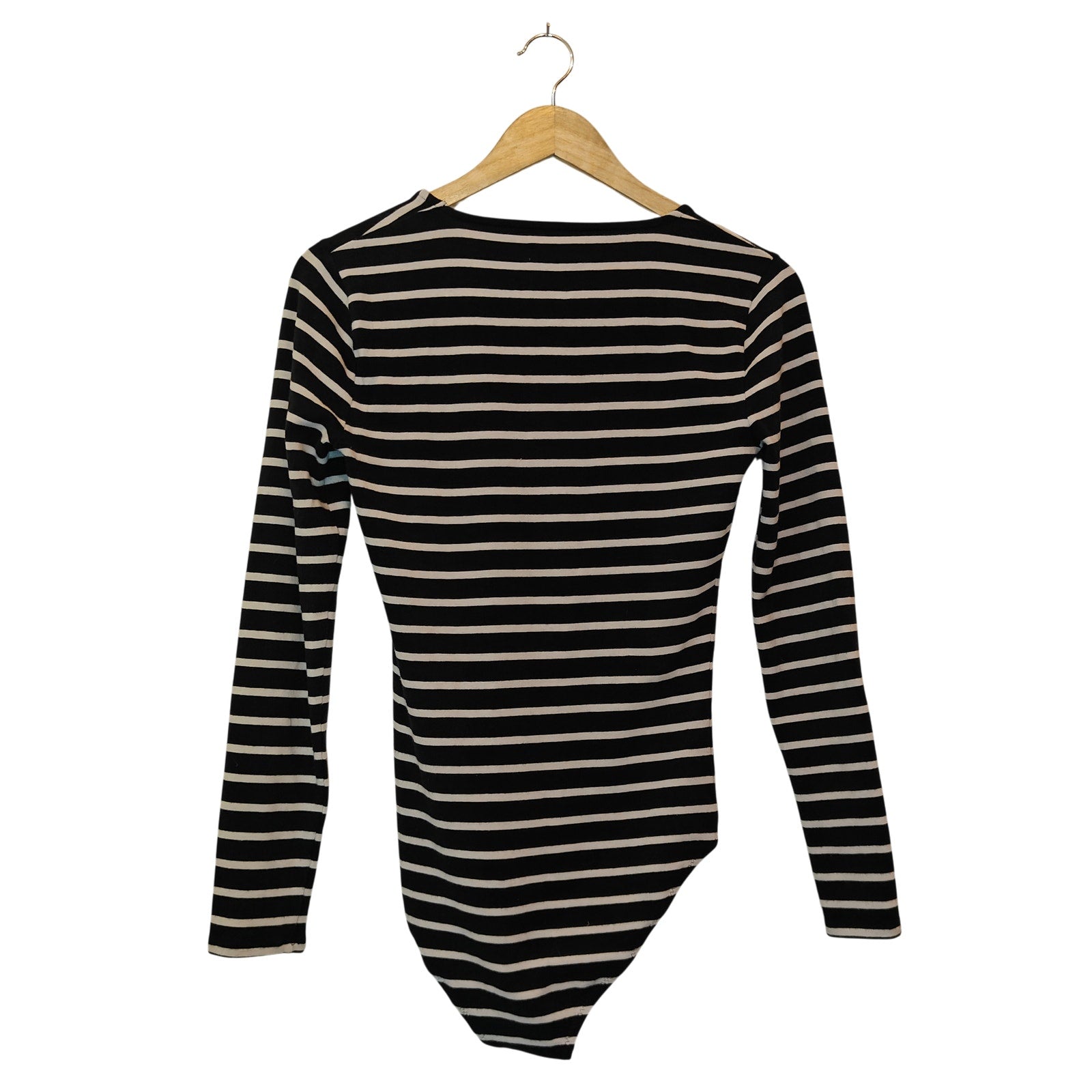 Madewell black and white striped long sleeve bodysuit, size Medium.