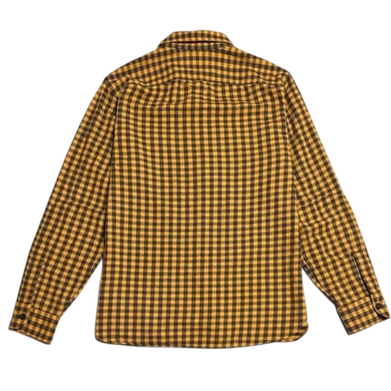 RRL by Ralph Lauren long sleeve button-down shirt in a classic yellow and black gingham check. Features dual chest flap pockets with button closures, sturdy buttons, and a structured workwear-inspired fit that RRL is known for. Crafted with rugged detailing and timeless style—perfect for casual wear, layering, or western/workwear looks.