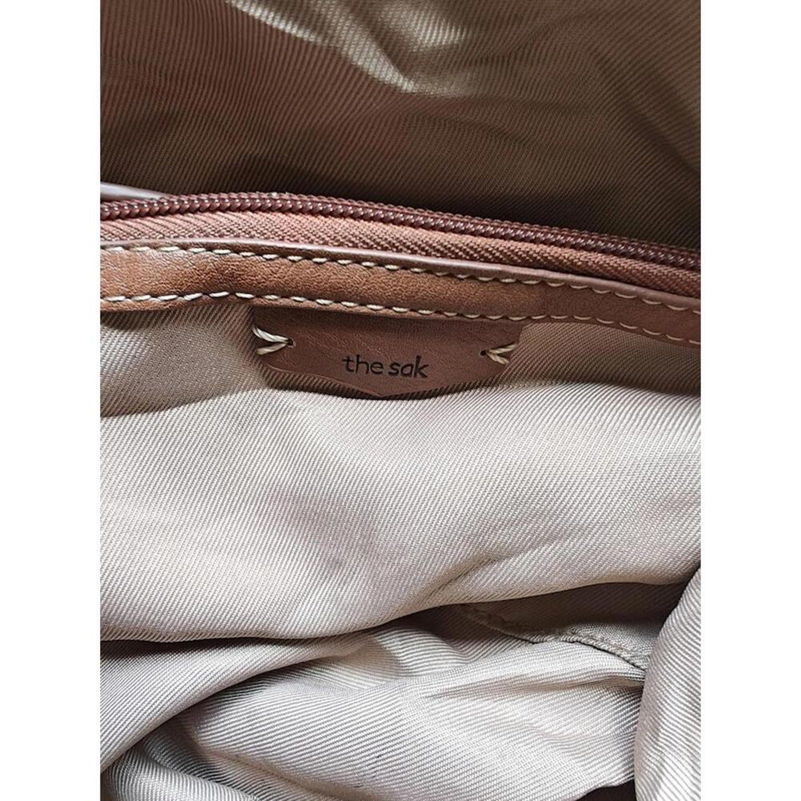 This The Sak tan leather shoulder bag is the perfect everyday boho-chic accessory. Made with genuine leather, it features woven detailing, wooden bead tassels, and a spacious interior for all your essentials. A versatile purse that works for casual outings, office, or travel.