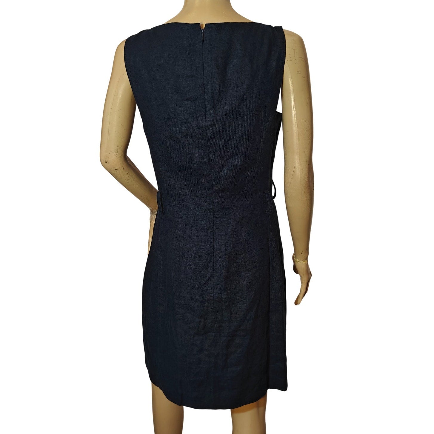Navy Linen Sleeveless Shift Dress