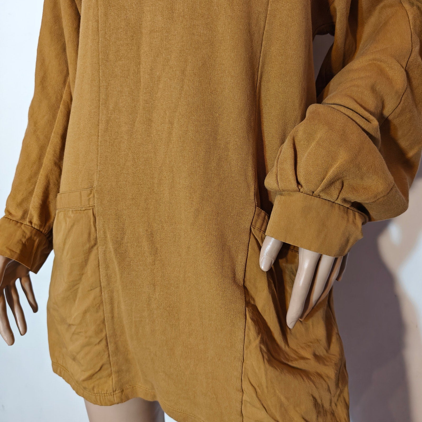 Cozy, modern, and effortlessly stylish — this ZARA sweatshirt dress/tunic is the perfect throw-on piece for casual days. Made from 100% cotton, it features a rich mustard/marigold tone, long sleeves with a relaxed slightly ballooned shape, and front patch pockets for a practical finish. Designed with an oversized, slouchy aesthetic that works beautifully as a dress or oversized tunic with leggings.